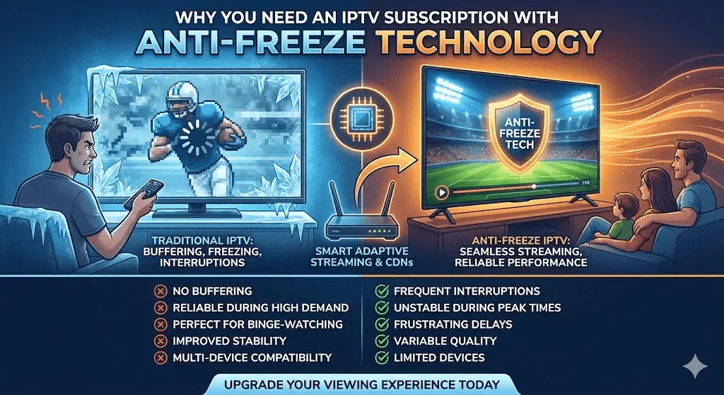 “Before I switched to an IPTV service with anti-freeze technology, my soccer games kept freezing right when the action got intense.. Since switching, I haven’t missed a single play. The difference is unbelievable.”